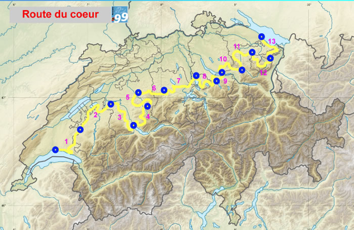 9ème challenge réalisé en 2025 : Traverser la Suisse à VTT en 13 étapes par la "Route du coeur N°99" (itinéraire national de SwissMobile)