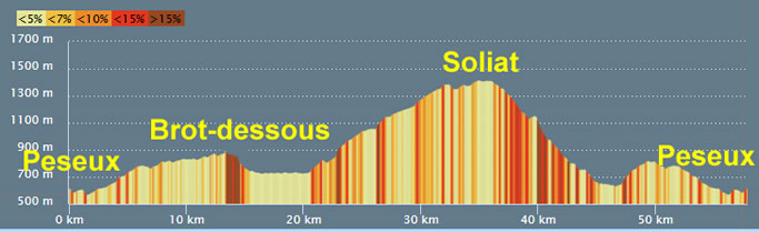 | Altitude | Soliat 1445 m Col routier du Lagua 1295 m Col de muletier du Pertuis de Bise 1375 m |