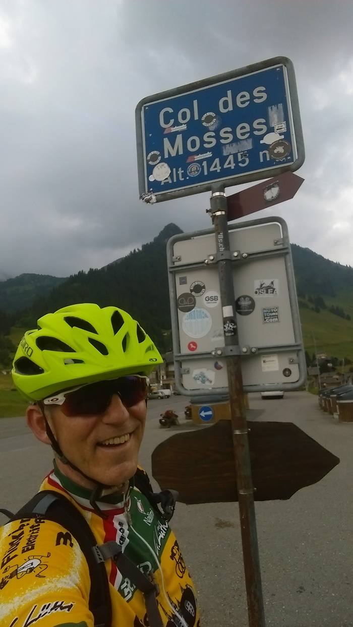 La raison en était que le Mosses était le seul col pour lequel je n'avais pas de vidéo, il fallait donc combler ce manque.Départ 7h15 de la maison pour conduire Chantal au cheval à Fenin, je file ensuite sur Château-d'Oex que j'atteins vers 9h15. Départ à 9h25 pour les Mosses par un temps précaire où le tonnerre gronde déjà, je subodors que je vais me reprendre une rincée !!!J'ai pris pour la journée mon Canondale qui a des rapport de vitesse plus grand que le mountain bike mais vu les pentes supposées, ça devrait être ok. La parzie de Gstaad à Château d'Oex étant plate limite descente, cela m'avantagera.