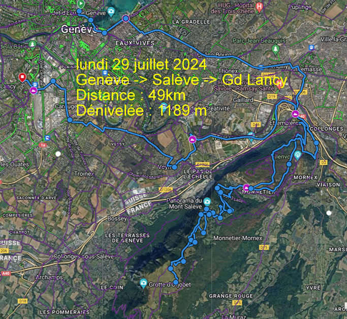 Je ferai la descente par la route puis arriverai à Veyrier avant de m'enfiler dans des méandres de petits chemins de quartier résidentiels bien sympathiques. Ce sera sans problème que je trouverai le quartier de Pont-Rouge lieu de résidence de Yoan que je retrouverai à 18h00 précise après m'être fait une petite glace dans un kiosk de Grand Lancy.