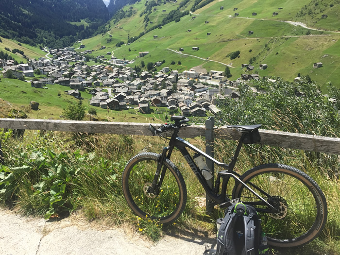 Dimanche 19 juillet 2020 Safien-Platz - Lumbrein (étape N°7/16 « l'Alpine Bike 1 ») (intro pris du site "SuisseMobile") Rouler sur les traces des Walser: début tranquille par la vallée mystique du Safiental, montée raide sur le chemin «Polenweg» (les polonais l'ont construit pendant la guerre 39-45) jusqu'au summum: le col du Tomülpass. Belle descente vers Vals mais dangereuse par endroit avec un revêtement de pierres glissant les unes sur les autres. Puis pédalage final tranquille (ndlr : pas tant que ça avec la fatigue de la fin d'étape) dans le Val Lumnezia isolé.