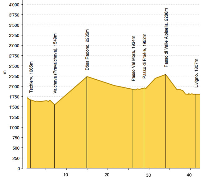 Lundi 27 juillet 2020 Tschierv - Livigno (I)(étape N°2/16 « l'Alpine Bike 1 ») (intro pris du site "SuisseMobile") Montée par une forêt de mélèzes dans le mystique Val Mora: haute vallée proche du ciel, l'une des plus belles de Suisse. La nature sauvage canadienne semble à portée de main. Descente sur un trail caillouteux vers l'Italie, joli chemin le long de lacs. Les beautés naturelles se méritent... en particulier dans le Val Mora. Ce n'est qu'après avoir franchi un dénivelé de 600 mètres sur un chemin de pierres raide à certains endroits que l'on accède aux portes de cette haute vallée pittoresque.