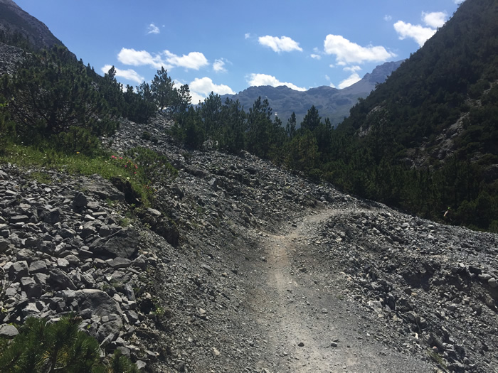 Le sentier bien aménagé permet de pédaler à un rythme soutenu et de parcourir en plat les derniers mètres jusqu'à Livigno où l'on apprécie l'ambiance italienne.