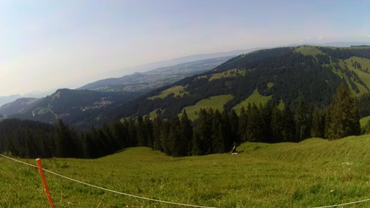 Après le passage du camping, la pente va montrer le bout de son nez pour ne plus quitter le tracé avant de surplomber "Moléson-Village". La vue sur le Moléson et ses dauphins est alors à son paroxysme. Une descente directe dans les champs puis un bout de route me mène à "Moléson-Village" même.