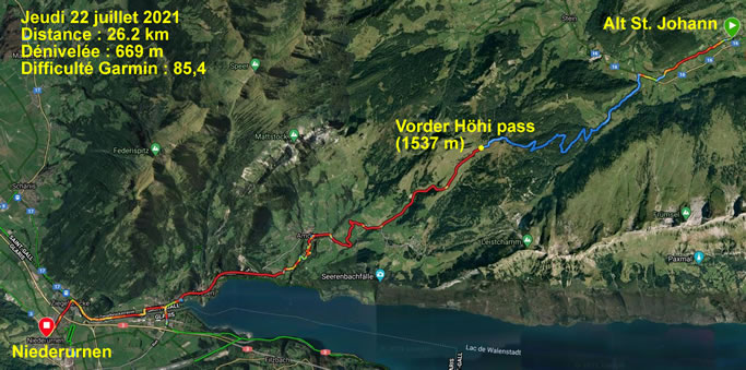 Effectivement la descente est magique et tout à coup se dévoilent les eaux du lac de Walensee ponctuées sur sa rive ouest par la ville de Ziegelbrücke.