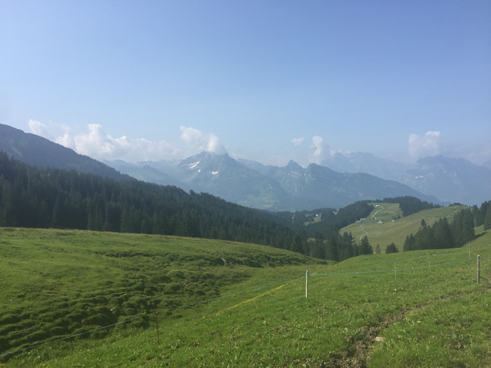 Au début de la montée du col du "Vorder Höhi", une benne plutôt rustique est déjà en service pour quelques touristes.