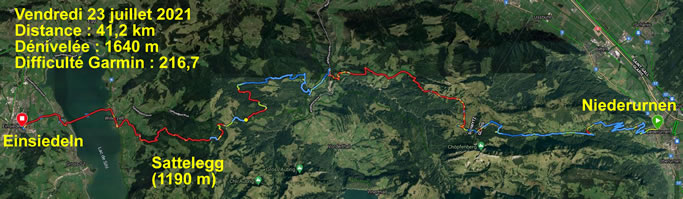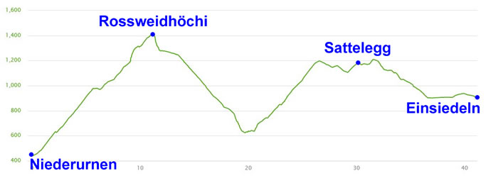 Une première ascension sera suivie dans la roue par une descente en vallée avec une remontée sur le col du Sattelegg après quoi la descente sur Einsiedeln sera magique avec une arrivée au pied du cloître.