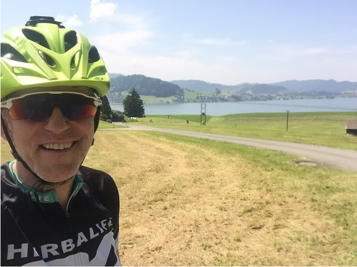 La descente était cool sur le lac de Sihl avant de rejoindre le pont traversant et m'ayant amené à la porte d'Einsideln. J'avais tellement la pêche que durant tout le pont j'ai coupé le vent à un cycliste en vélo de route sur les 3 derniers kilomètres en se séparant il m'a lancé un "merci" très sportif !