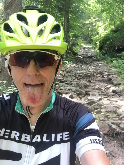 Au pied de la montagne le sol devient très rocailleux et très pentu ce qui oblige les vététistes à pousser leur monture jusqu'au sommet d'un passage donnant l'accès à un point de vue qui est partagé par le point d'arrivée d'un télésiège non loin de là .