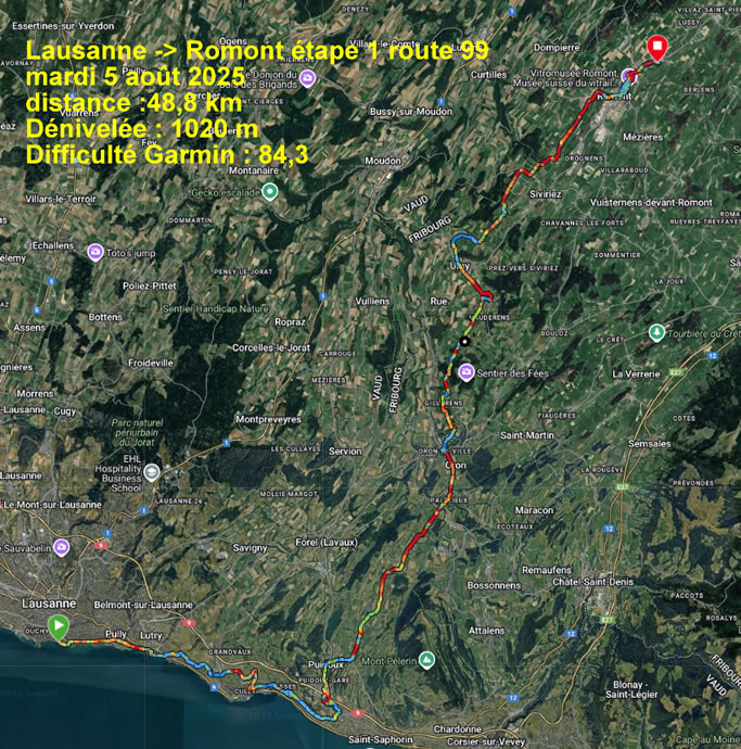 L'arrivée à Romont signait la fin de la première étape et le château avec ses alentours étaient une belle récompense à cette première journée de prise de contact avec la route du coeur 99.