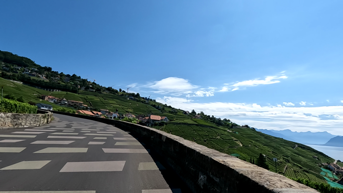 La première dénivelée se fait déjà sentir dans les vignes et là on s'aperçoit de la dimension du domaine viticole. Les petits chemins se confrontent avec des pourcentages respectables dans un écrin magnifique avec vue panoramique sur le lac léman et les alpes franco-suisse.