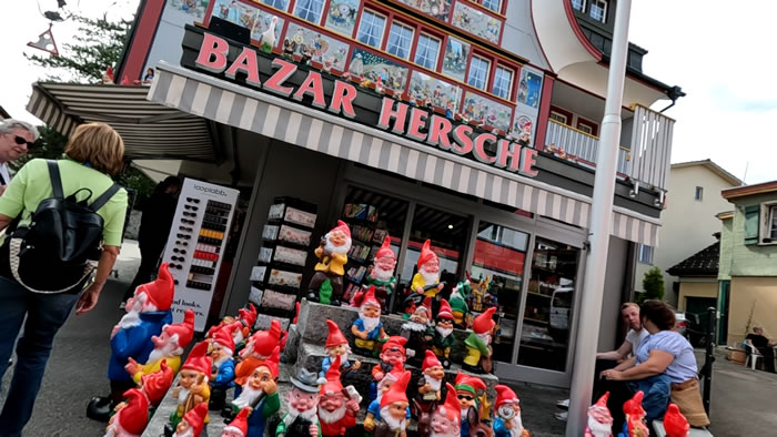 Il s'ensuivit une longue descente sur Appenzell et là j'ai retrouvé mes repères, boulangerie, petits nains, place centrale et moultes magasins de nourriture ou de « gadgets kitch ».