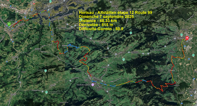 Mais avant d'y arrivé, il fallait depuis Herisau prendre sur 5 km environ un itinéraire porté sur la descente mais la logique veut que chaque descente implique une montée bien que cette étape a globalement une dénivelée négative de 300 m environ.