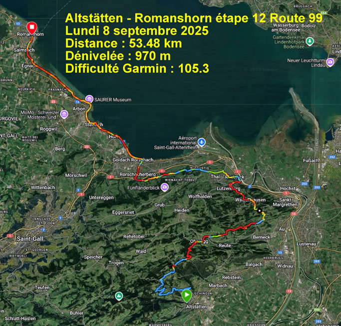 L'arrivée à Romanshorn se fait aux alentours de 12h45 et je prendrai pour rentrer le train de 13h47 pour arriver à la maison à 17h00.