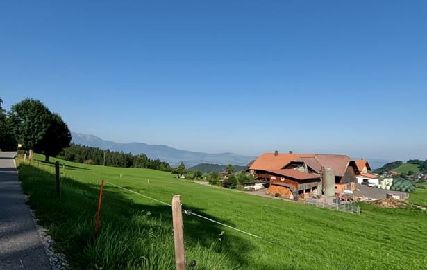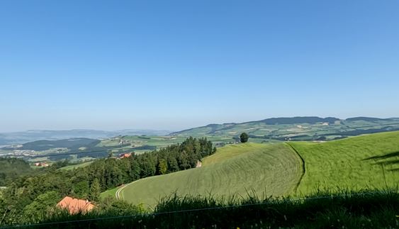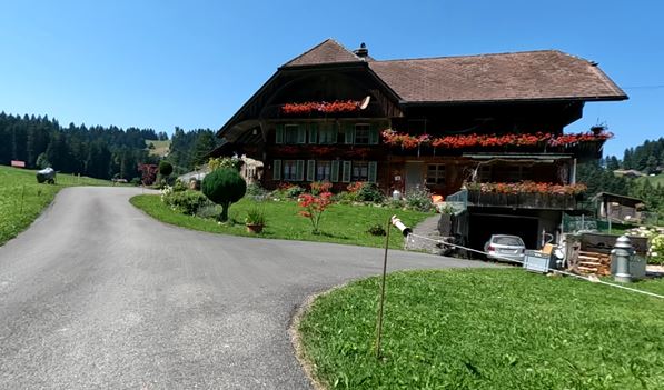 La beauté des fermes réparties au compte-goutte ça et là au hasard des pâturages pour la plupart en pente, force l'admiration. Les villages traversés n'ont pas été très nombreux et les personnes croisées encore moins mais on sent une sérénité paysanne qui semble propre et ordonnée donnant l'impression que cette région de l'emmental est trop méconnue de la plupart des gens qui voient en son fromage qu'un aspect mercantile à l'international mais en réalité c'est beaucoup plus que cela.