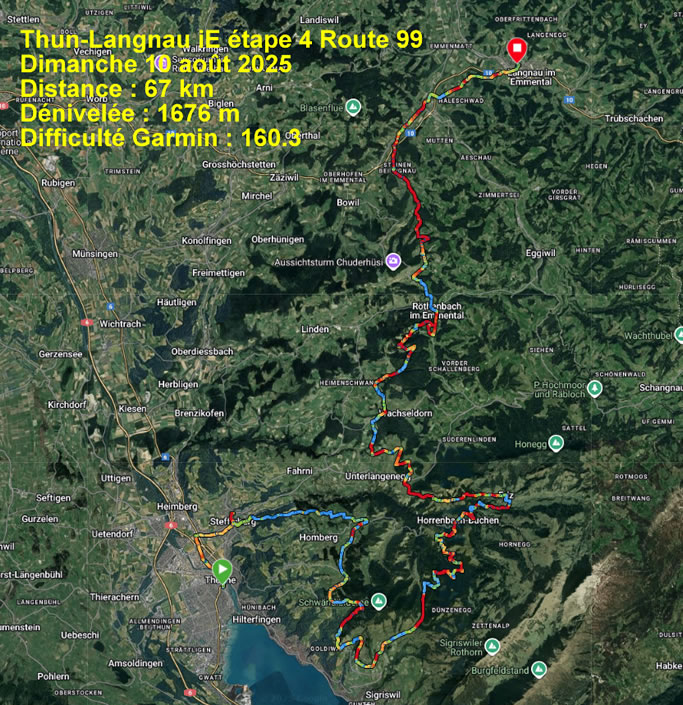L'échauffement se fait le long d'une piste cyclable jusqu'à Steffisburg avant de s'aventurer dans une petite forêt où coule un petit ruisseau que j'avais déjà fait en descente lors de la « Panorama Bike Route N°2 itinéraire national ».