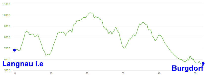 L'arrivée à Burgdorf est précédée par une très longue descente agréable le long du Luterbach car aucun coup de pédale n'est nécessaire durant plusieurs kilomètres sur cette douce rampe.