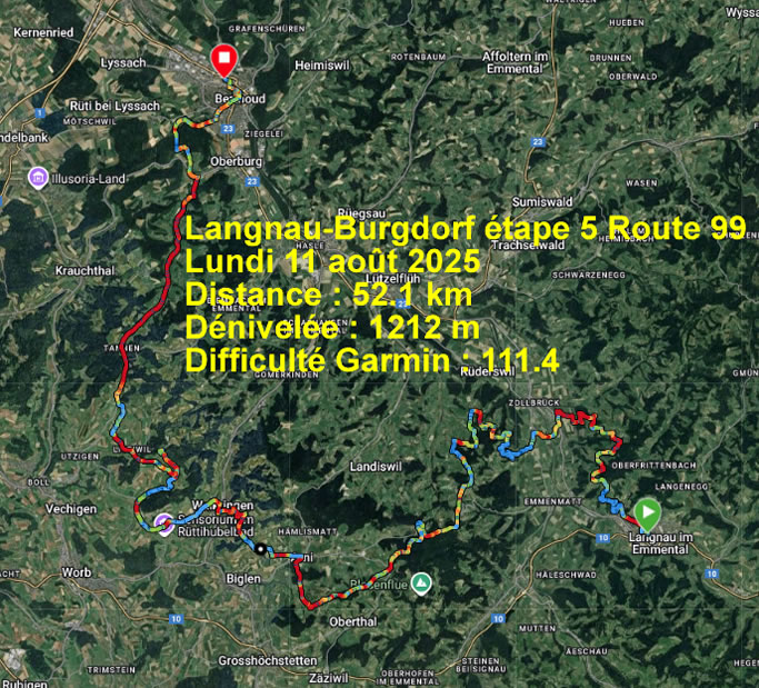 Après l'étape reine de Thun - Langnau difficile d'enchaîner mais je restais persuadé que l'arrivée à Burgdorf serait à nouveau agrémentée par la vue du château ce qui donne toujours une ambiance particulière de se dire qu'il y eut une fois des chevaliers en armure prêt à se battre pour le seigneur des lieux.