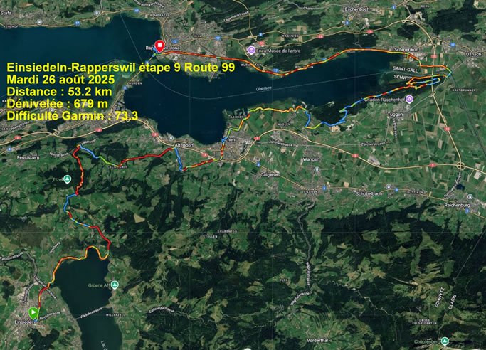 Ensuite passage en forêt puis descente sur Lachen et balade sur les rives du lac, passage devant le port puis cape sur la petite piste d'aviation de Wangen-Lachen.
