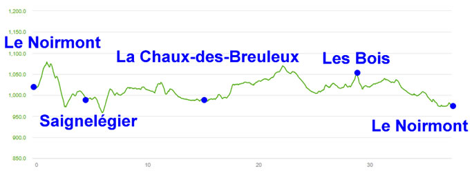 La descente sur Muriaux se passa sur un chemin caillouteux et après avoir croisé des randonneurs à cheval nous avons repris un chemin montant pour rejoindre Saignelégier et son effervescence dans la mise en place du marché concours qui aura lieu dans moins de 24 heures.