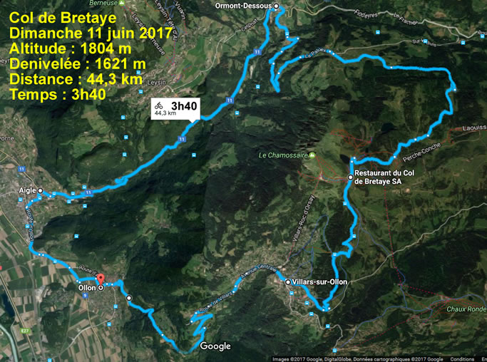 Depuis Ollon, la montée jusqu'à Villars est classique sans trop de particularité, la route est large, le trafic moyen et le tout se fait en 1h15 jusqu'à l'entrée de la station et ajouter 15 minutes jusqu'à la bifurcation pour prendre la "route de Bretaye" .