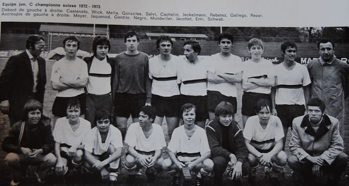 Ecole de football à Xamax puis juniors inter-C (champion suisse en 1972-73 voir photo d'archive ci-dessous. Je suis au rang du haut 3ème depuis la droite, comme sur le photo du bas, quelle coïncidence... ), inter-B, inter-A, équipe réserve de Neuchâtel-Xamax.