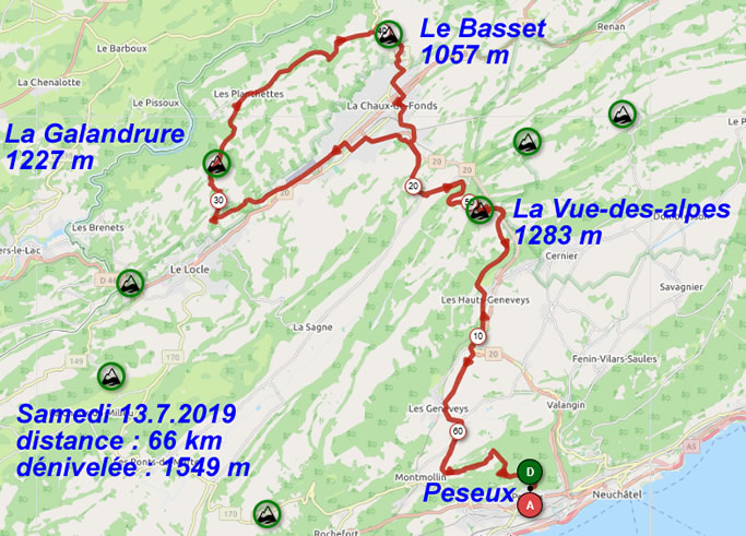 Les 2 petits cols à aller chercher ne sont pas haut en soi mais petit détail qui a son importance, ils se trouvent derrière la Vue-des-Alpes qu'il fut passer et qui domine la région à 1283 m d'altitude. Depuis Peseux, et prenant mon VTT BMC, je prends les chemins de forêt pour atteindre Coffrane par le sud et ensuite aux Geneveys-sur-Coffrane, je prends les chemins de forêt bordant la voie ferrée qui mène aux Haut-Geneveys.