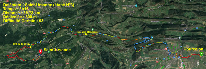 (intro pris du site "SuisseMobile") À peine quitté le centre-ville de Delémont, on plonge dans la vaste région aux douces montagnes: La route monte jusqu'à la chaîne des Rangiers et au col du même nom avant la descente fulgurante dans la profonde vallée du Doubs. Elle s'achève, longeant le tranquille cours du fleuve, dans la ville historique de St. Ursanne.