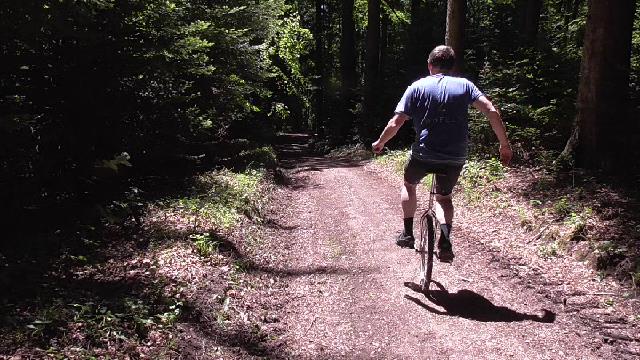 Après avoir terminé la journée, j'avais les jambes en compotes, la musculature sollicitée par le monocycle "en descente" est toute différente de celle utilisée pour le vélo car on travaille tout en retenue (mode freinage alors qu'en vélo, à la montée ou au plat, on est en poussée).