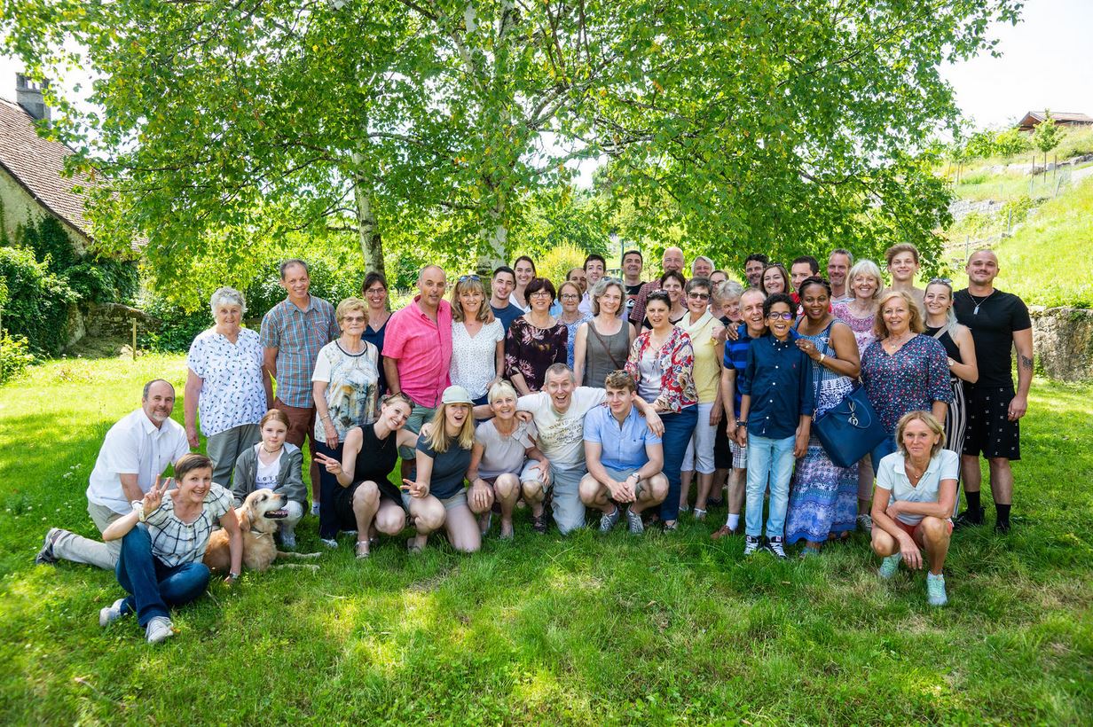 Ce n'est que vers 12h30 que Laurent et moi nous nous sommes pointés à la maison de paroisse de Corcelles où nous attendaient une bonne quarantaine d'amis et là le puzzle était sous mes yeux. J'ai été bluffé de découvrir toute ma famille avec mes collègues et ex--collègues de travail que j'apprécie beaucoup et qui sont une valeur ajoutée incroyable faisant du lieu de travail un cocon de bonheur où il fait bon s'épanouir. Des amis et amies que j'aime et qui ont marqués de leur emprunte des tranches de ma vie et que je vois que trop rarement avaient fait le déplacement. Quelques subiéreux étaient présents peu regardant de leur temps, mettant en avant l'amitié qui lie les sportifs et les voisins, bref TOUS étaient et sont des gens sur qui je peux compter et pour cela je lance un grand merci à tous ceux qui me lise car ce jour restera à jamais gravé dans ma mémoire qui doit rester active durant de longue décennie encore...