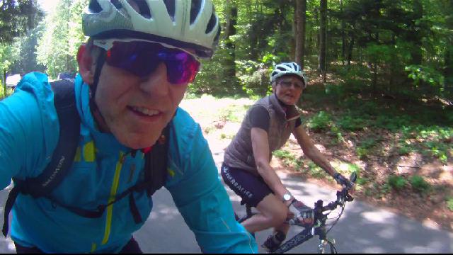 Le retour s'est effectué par le parcours mesuré des Cadolles puis une petite variante histoire de faire "quinter" Chantal, c'était prévisible mais ... nécessaire, une petite montée sèche sur route caillouteuse dans la forêt pour rejoindre l'ex-golf des Cadolles avant une descente sur Valangin pour remonter sur Serroue.