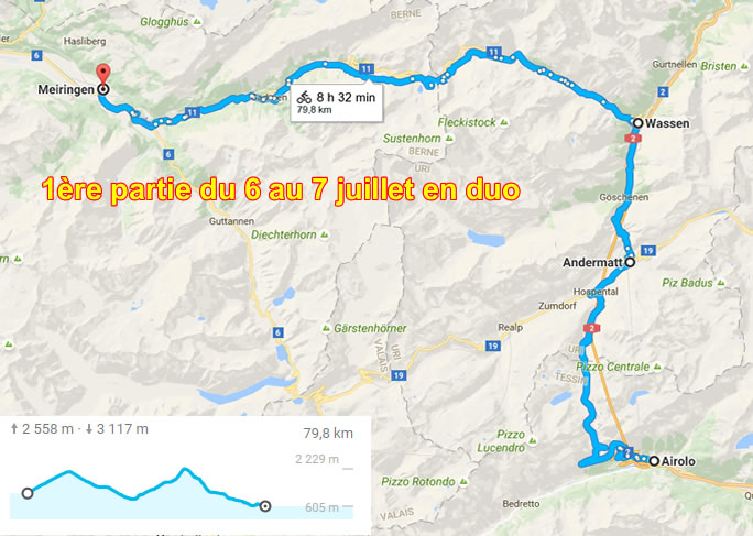 Ayant la chance d'avoir des vacances élargies à 6 semaines, je peux me permettre de faire des sorties quand bon me semble en accord avec la météo. J'avais envie de faire le Nufenen, la Furka, l'Oberalp et le Lukmanier dans l'autre sens que j'avais fait à l'époque et pour cela il y avait de forte charge pour moi que je préférais faire en solo pour ne pas à impliquer un ami dont les objectifs ne sont pas forcément compatibles. Cette mesure est une mesure de respect de l'autre et pas du tout un amour du solitarisme...!